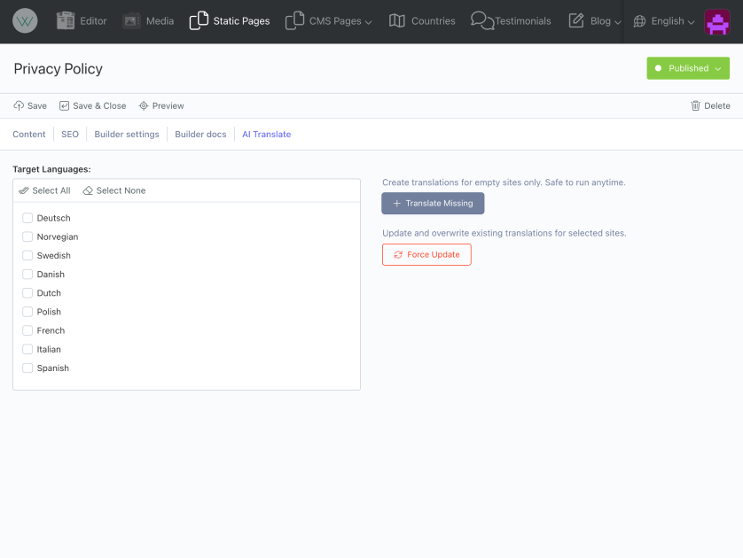 Seamlessly translate October CMS Tailor records using AI. Works with multisite.