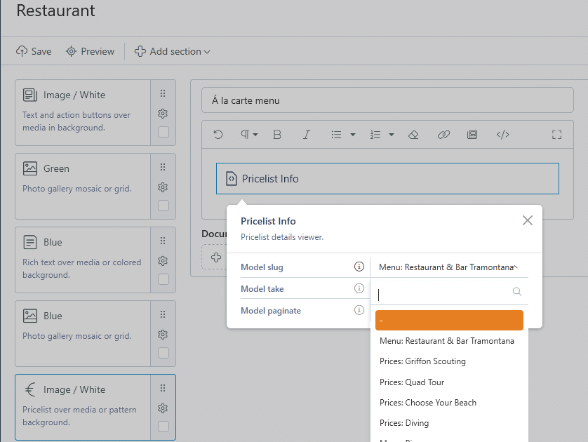 PricelistInfo- pricelist table display with UIKit, registered as page snippet