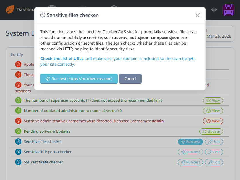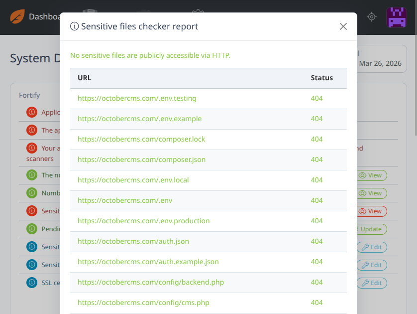 Fortify is a comprehensive security suite for October CMS that helps you harden your application, monitor vulnerabilities, and enforce best security practices.